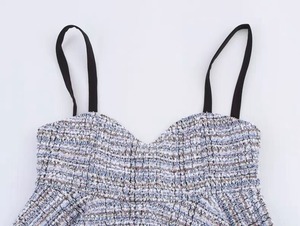 上品なツイード素材で仕立てた、夏にぴったりのフレアキャミソール。ふんわり広がるシルエットが、女性らしさを引き立てます。