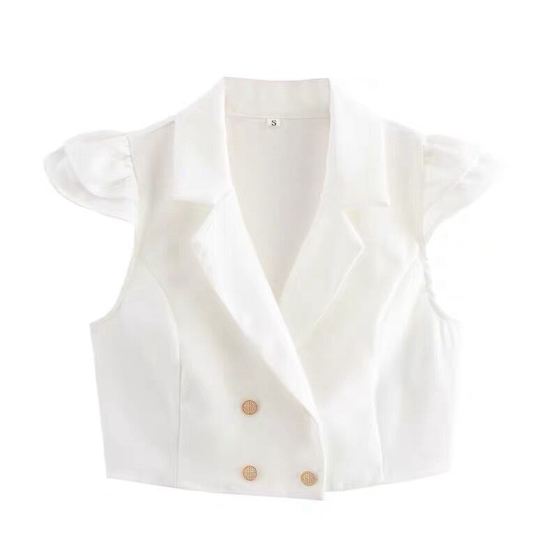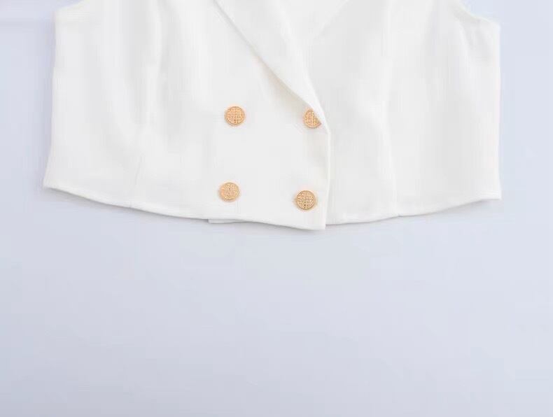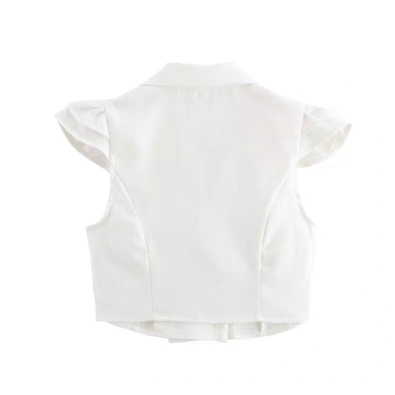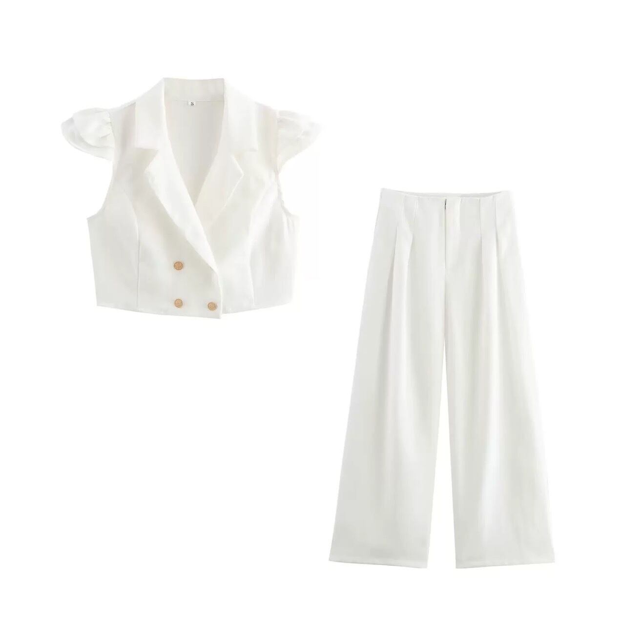 ホワイトパフスリーブベスト×ワイドパンツ セットアップ