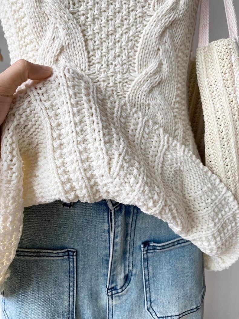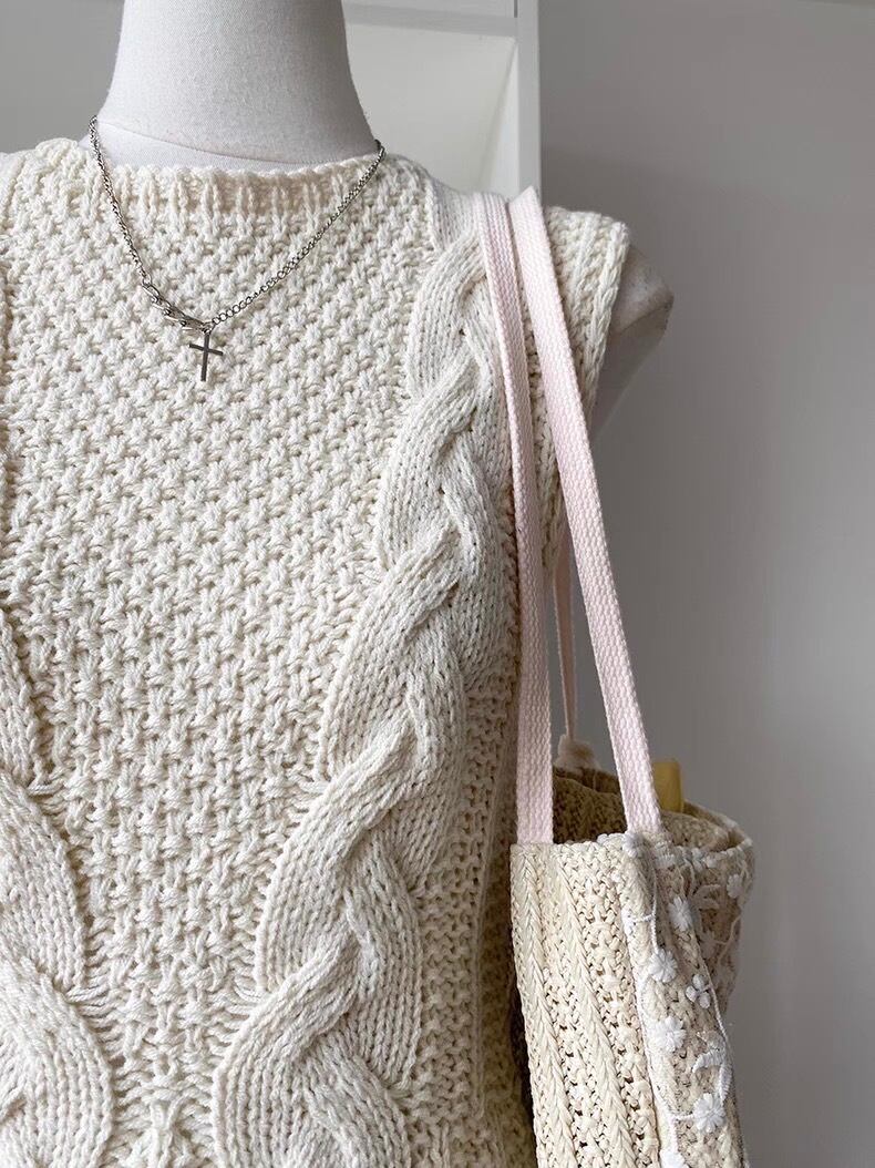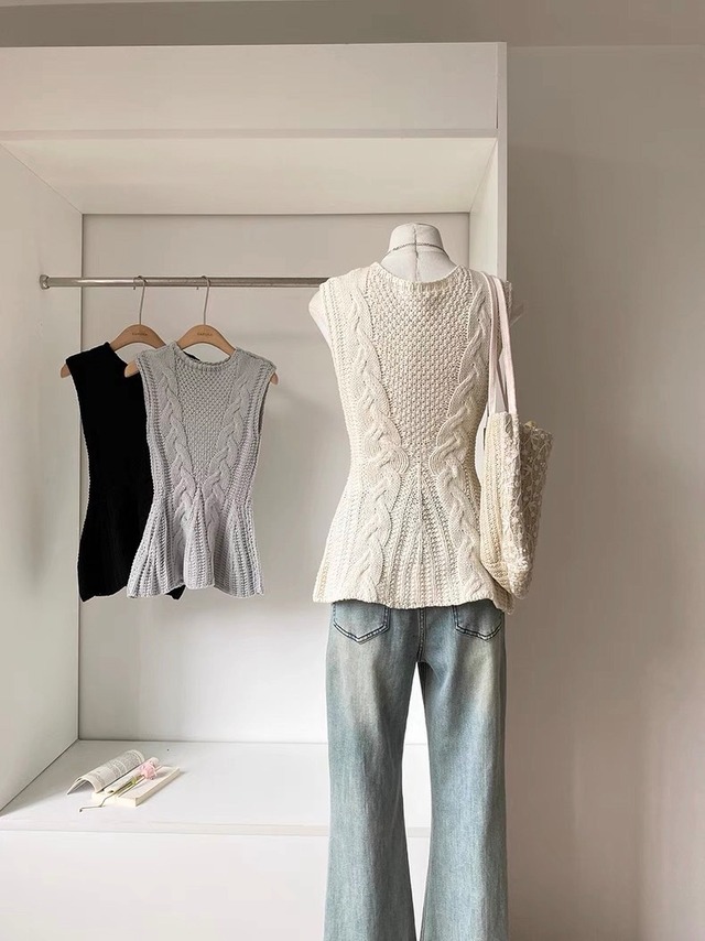 全3色ケーブルニットペプラムノースリーブトップス