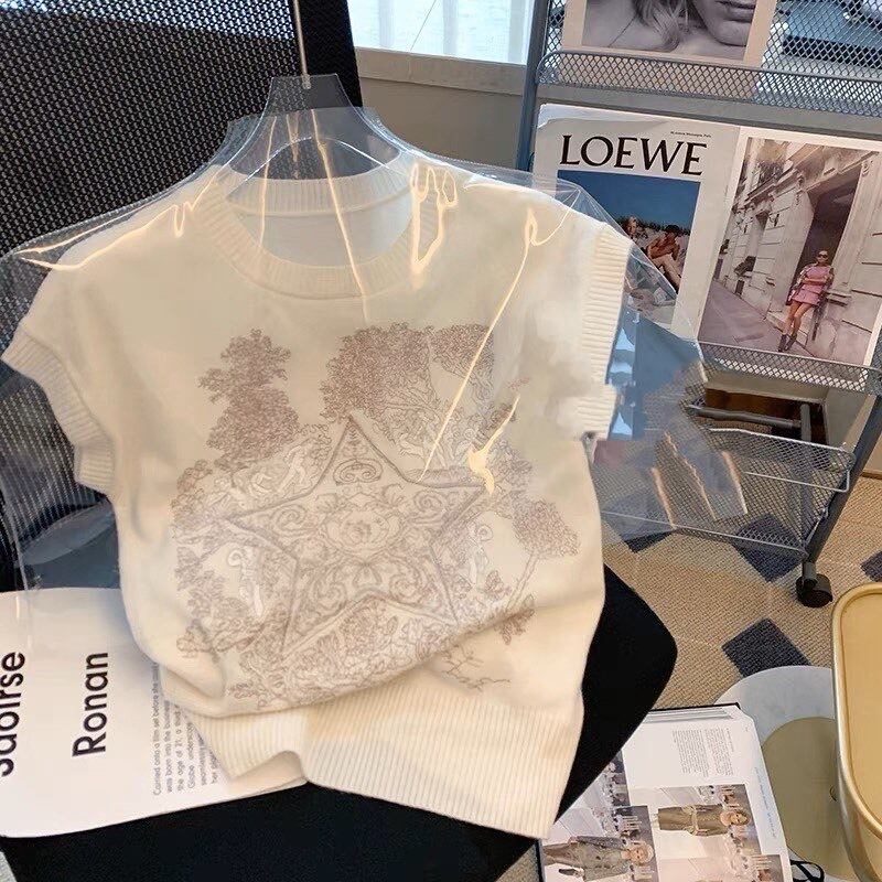 エンブロイダリーノースリーブトップス