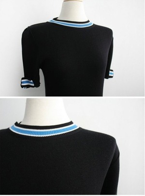 袖口にリボンがついたニット素材の半袖トップスです。柔らかく伸縮性があり、着心地のいい一着。シンプルなデザインでありながら、程よい甘さがあり様々なスタイリングに合わせやすいアイテムです。カジュアルにも、きれいめにも、幅広くお使いいただけます。