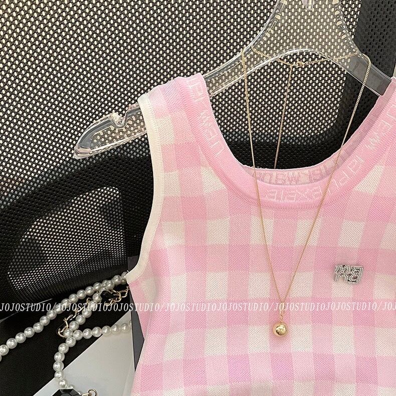 全2色ギンガムチェックライトカラーベストトップス