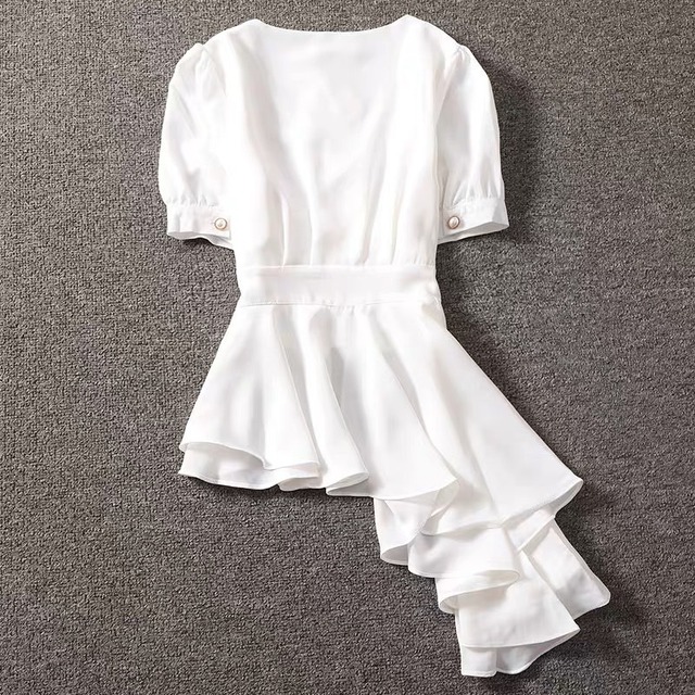 ◇商品説明◇ アシンメトリーなカットのフリルが特徴で、華やかな印象を与えます。柔らかな素材で快適な着心地を提供し、カジュアルなスタイリングからフェミニンなコーディネートまで幅広く活用できます。トレンド感を持ちながらも快適さを追求した一枚です。 ◇色◇ ホワイト、ブラック(画像参照) ◇サイズ◇S/M/L/XL 【S】着丈57/79cmバスト82cm 袖丈25cm 肩幅31cm 【M】着丈58/80cm バスト86cm 袖丈26cm 肩幅32cm 【L】着丈59/81cmバスト90cm 袖丈27cm 肩幅33cm 【XL】着丈60/82cmバスト94cm 袖丈28cm 肩幅34cm ◇納期◇ ご注文後(決済完了後)から2週間~4週間 (土日祝は除く) 納期は目安になります。 ※決済完了確認後からの発注となります。 メーカーの都合や入荷時期により遅れる場合もございますので ご了承のほどよろしくお願い申し上げます。 ・メーカー側より直送での発送となります。 稀に在庫切れの場合がございますが万が一、在庫切れの場合は欠品の連絡、キャンセル処理をさせて頂きます。 【ご購入前に】 ご利用ガイドを必ずお読み下さい。 ・商品画像と実物の色には多少見え方に誤差がございます。 ・記載された目安サイズは商品によって1-3cmほど差がある場合がございますので、目安としてご活用ください。 ・海外製品のため、日本製より縫製等が若干劣る場合がございますが不良品ではございませんので予めご了承下さい。 ・お取り寄せ先の情報との誤差により、在庫を確保できない場合がございますので予めご了承くださいませ。 ・お客様都合での返品交換はお受け出来かねますのでサイズやカラーのお間違いのないようご確認下さいませ。 ご購入前に必ずお買い物ガイドをお読み下さいませ。