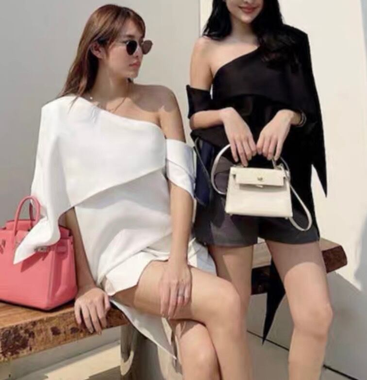 トレンディでスタイリッシュなアイテム。ショルダーの一方が露出しているデザインが特徴で、華やかな印象を与えます。