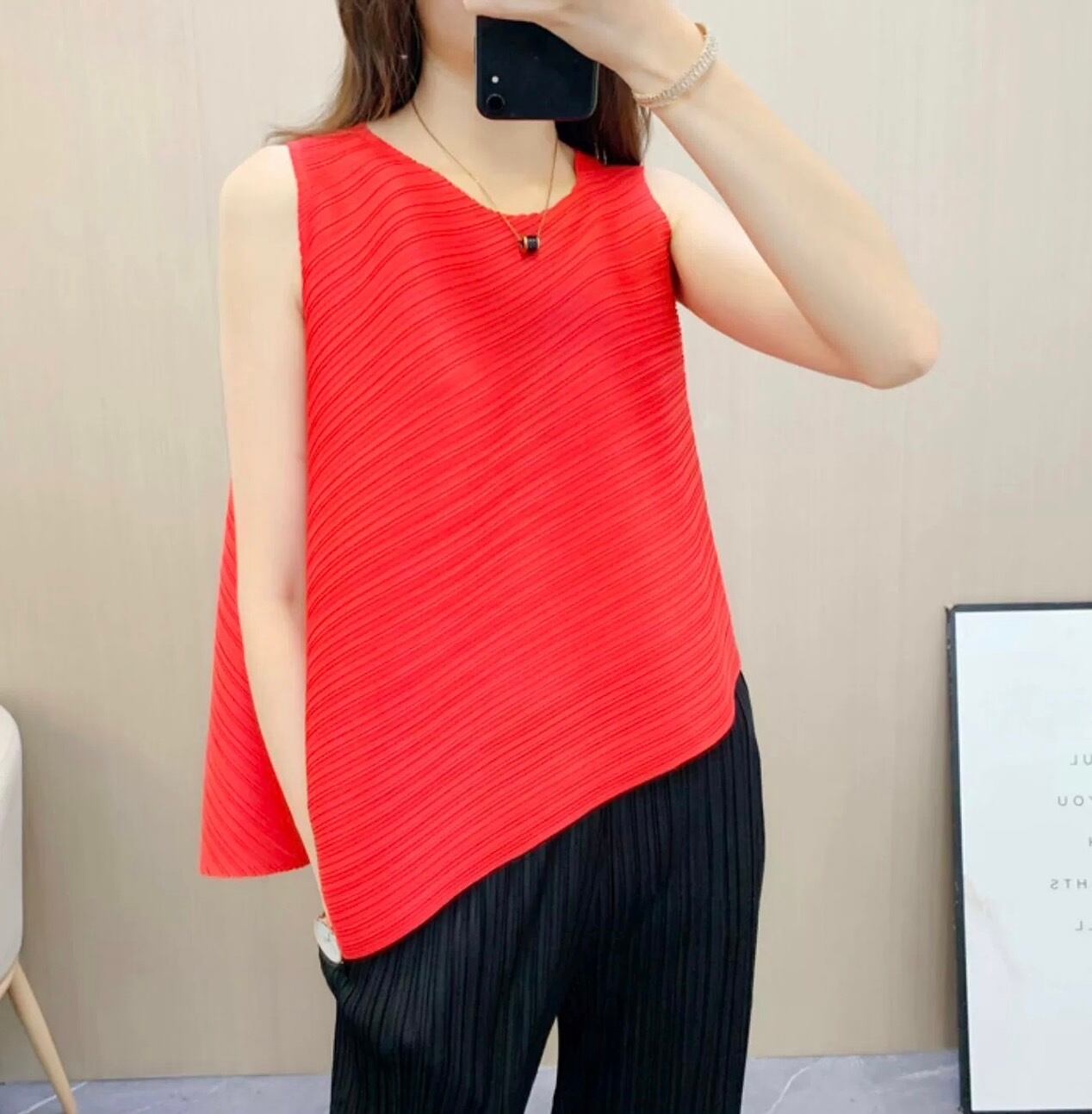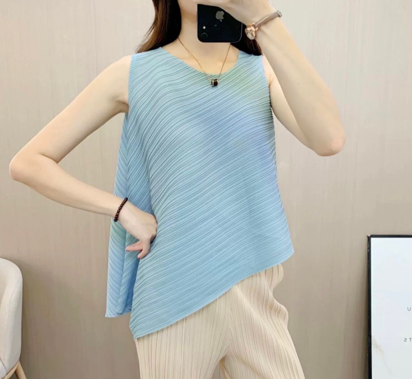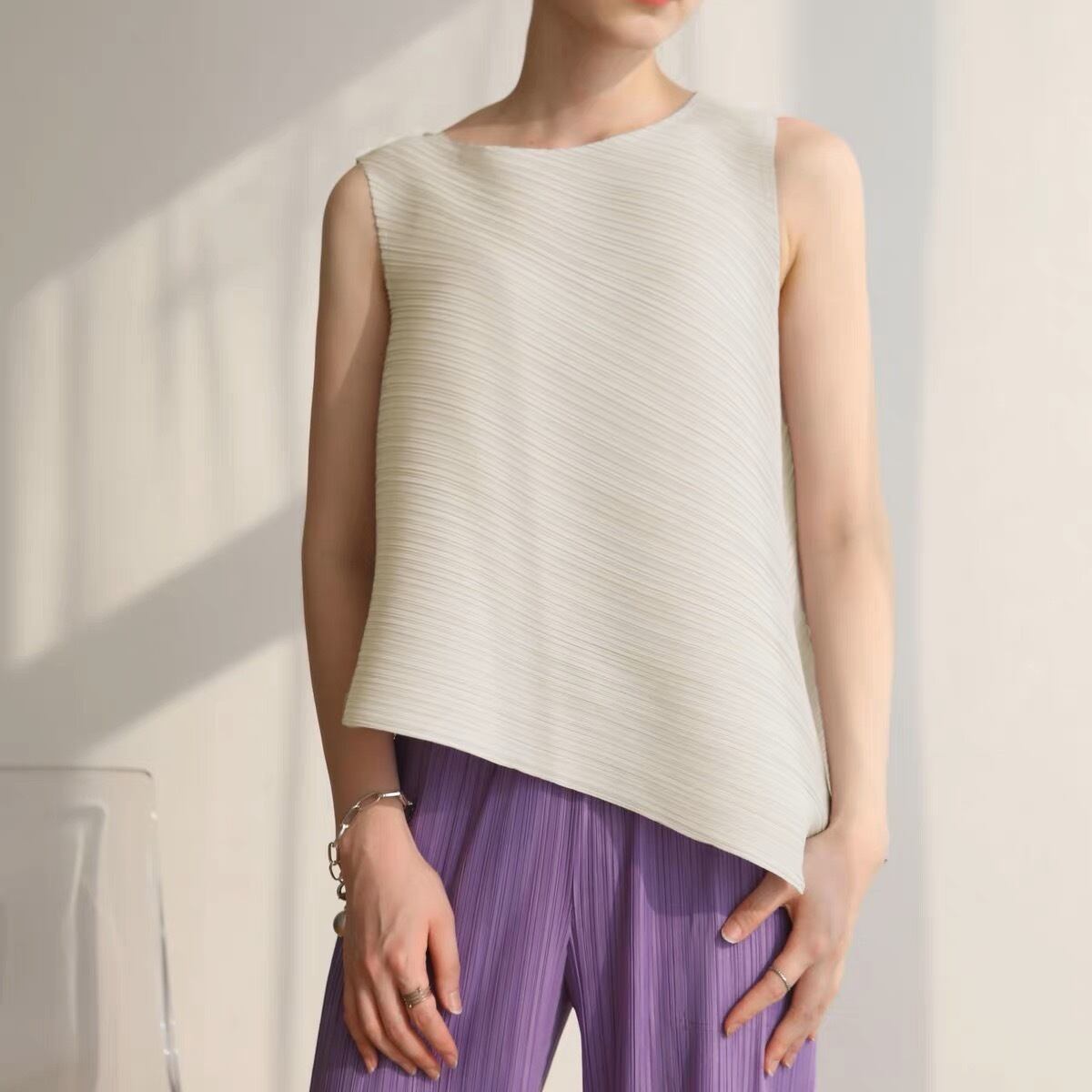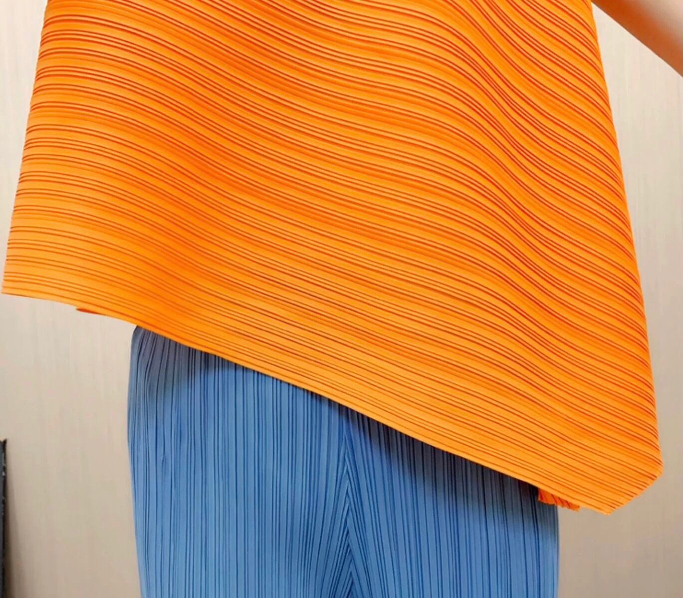 細かいプリーツが施されたデザインが特徴的です。プリーツによって生まれる立体感と動きが、エレガントな雰囲気を演出します。