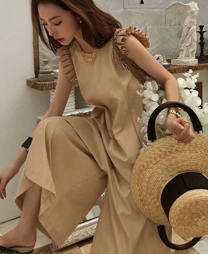 このオールインワンは、ルーズなシルエットが特徴的で、ゆったりとした着心地が魅力です。ノースリーブデザインなので、暖かい季節に涼しく着用できます。さらに、動きやすさも抜群で、アクティブな日常を過ごす女性にも最適です。