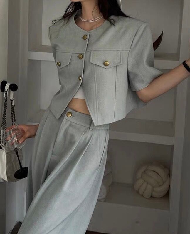 快適な着心地とおしゃれなスタイルが融合したセットアップです。トップスは半袖のトップで、カジュアルながらもきちんと感のあるデザインです。ワイドなパンツとの組み合わせで、リラックス感と流行の要素を両立させたコーディネートが楽しめます。様々なシーンに合わせて着回せる汎用性が魅力で、日常のおしゃれからアウトドアイベントまで幅広い場面で活躍します。