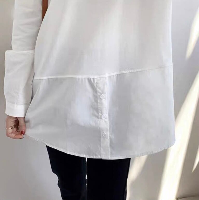 ホワイトシャツパネルロングTシャツ
