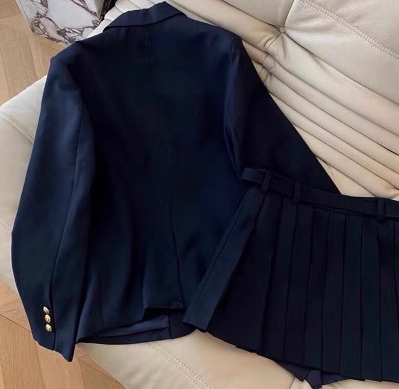 フレンチカジュアルテラードジャケットプリーツスカートセットアップ