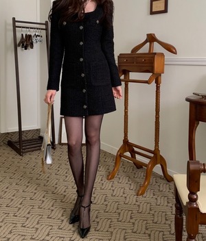 全2色スクエアーネックツイードワンピース