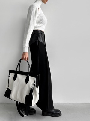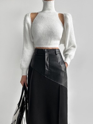 ユニークなパッチワークデザインは、スカート全体に豊かなテクスチャーをもたらし、スタイリッシュな印象を演出。上品なレザー素材は耐久性があり、シーズンを問わず幅広いコーディネートにマッチします。