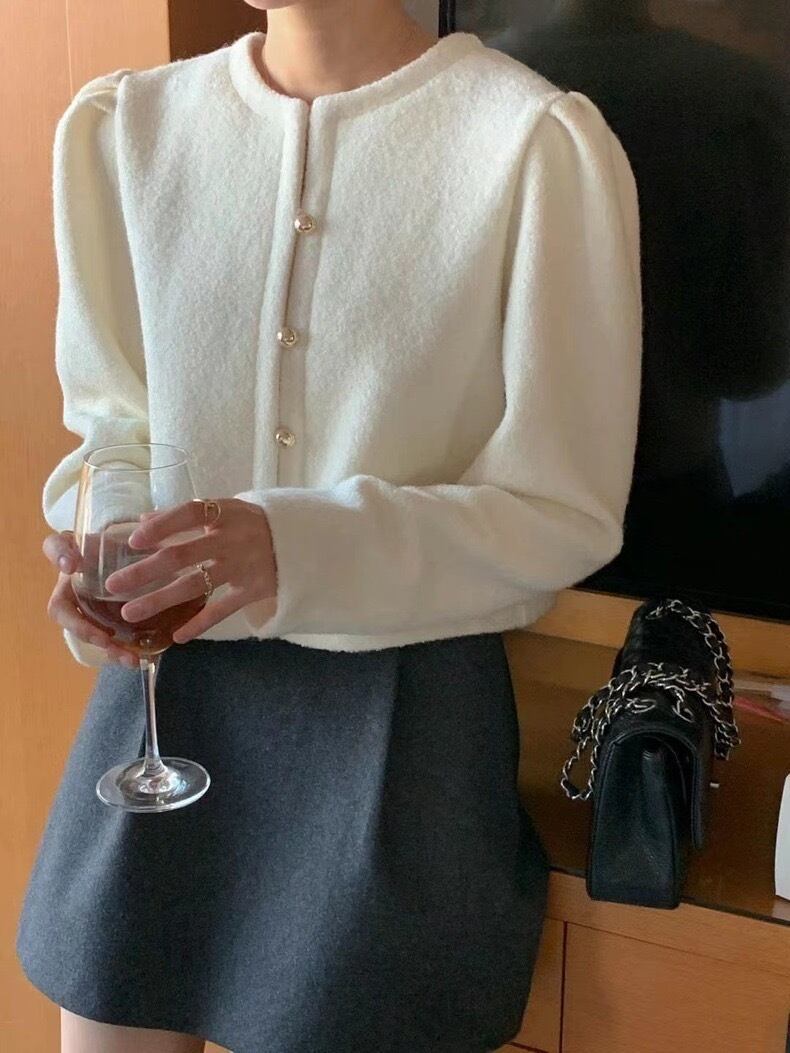 高品質なウール素材が、優れた保温性を提供し、寒い季節でも快適に過ごせます。さらに、パフスリーブのデザインがトレンディなアクセントとなり、シルエットを華やかに演出します。
