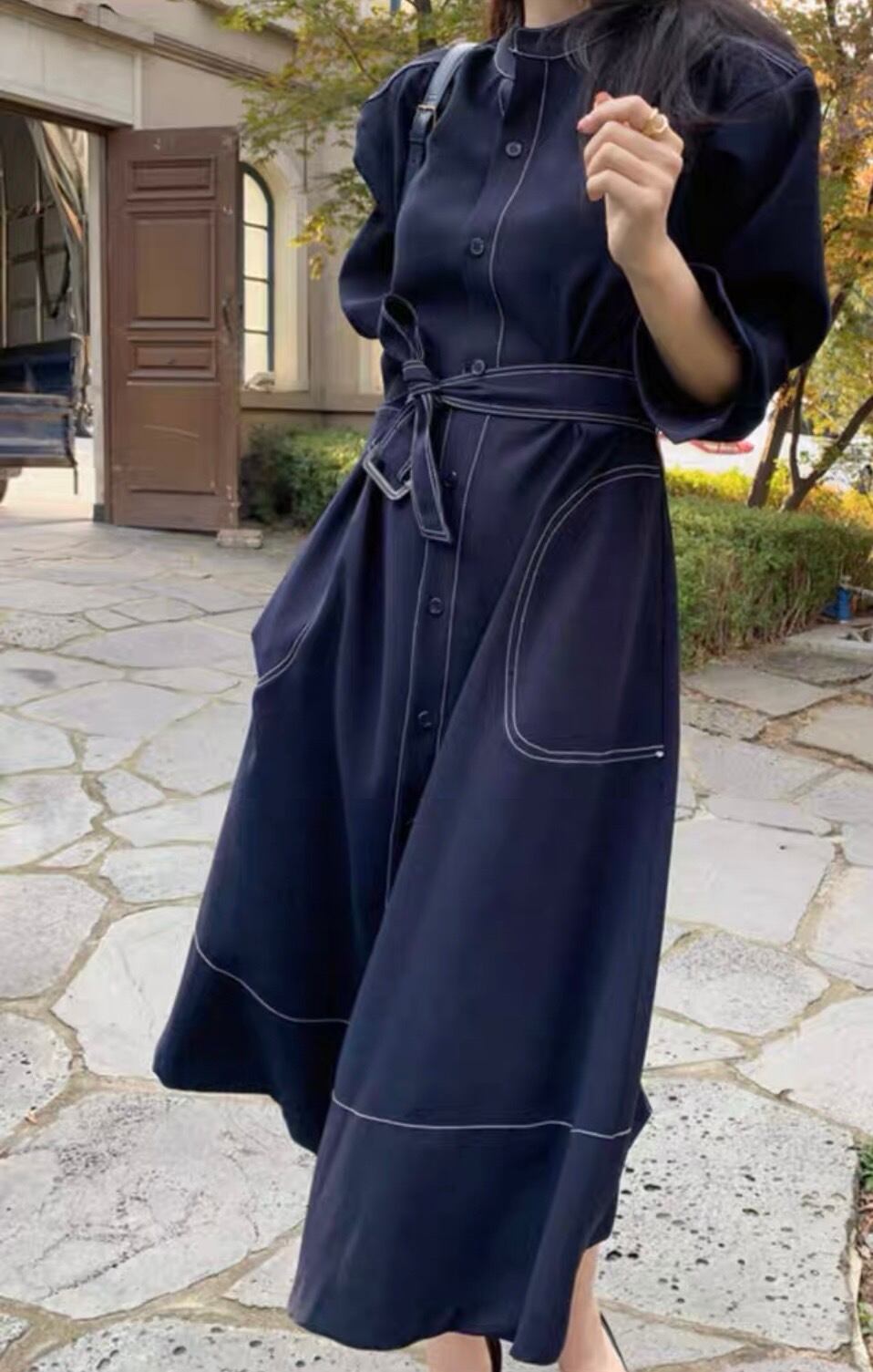 ◇商品説明◇ 洗練されたスタイルと機能性を兼ね備えたエレガントなアイテムです。トレンチコートのクラシックなデザインでワンピースとしての使い勝手も考慮されています。 このアイテムは、シンプルでありながらも美しいステッチディテールが特徴で、洗練された印象を与えます。トレンチコートの要素を取り入れたワンピースは、おしゃれな一枚でありながら、着心地も抜群です。 軽やかで通気性がありながらも、寒冷な季節に重ねて着ることができるので、シーズンを問わず幅広い着用が可能です。ベルトでウエストをマークすることで、女性らしいシルエットを演出し、さまざまなスタイリングに合わせやすくなっています。 ◇色◇ ネイビー、ワインレッド(画像参照) ◇サイズ◇ S/M/L/XL/XXL 【S】着丈116cmバスト90cm 【M】着丈117cm バスト94cm 【L】着丈118cmバスト98cm 【XL】着丈119cmバスト102cm 【XXL】着丈120cmバスト106cm ◇納期◇ ご注文後(決済完了後)から2週間~4週間 (土日祝は除く) 納期は目安になります。 ※決済完了確認後からの発注となります。 メーカーの都合や入荷時期により遅れる場合もございますので ご了承のほどよろしくお願い申し上げます。 ・メーカー側より直送での発送となります。 稀に在庫切れの場合がございますが万が一、在庫切れの場合は欠品の連絡、キャンセル処理をさせて頂きます。 【ご購入前に】 ご利用ガイドを必ずお読み下さい。 ・商品画像と実物の色には多少見え方に誤差がございます。 ・記載された目安サイズは商品によって1-3cmほど差がある場合がございますので、目安としてご活用ください。 ・海外製品のため、日本製より縫製等が若干劣る場合がございますが不良品ではございませんので予めご了承下さい。 ・お取り寄せ先の情報との誤差により、在庫を確保できない場合がございますので予めご了承くださいませ。 ・お客様都合での返品交換はお受け出来かねますのでサイズやカラーのお間違いのないようご確認下さいませ。 ご購入前に必ずお買い物ガイドをお読み下さいませ。