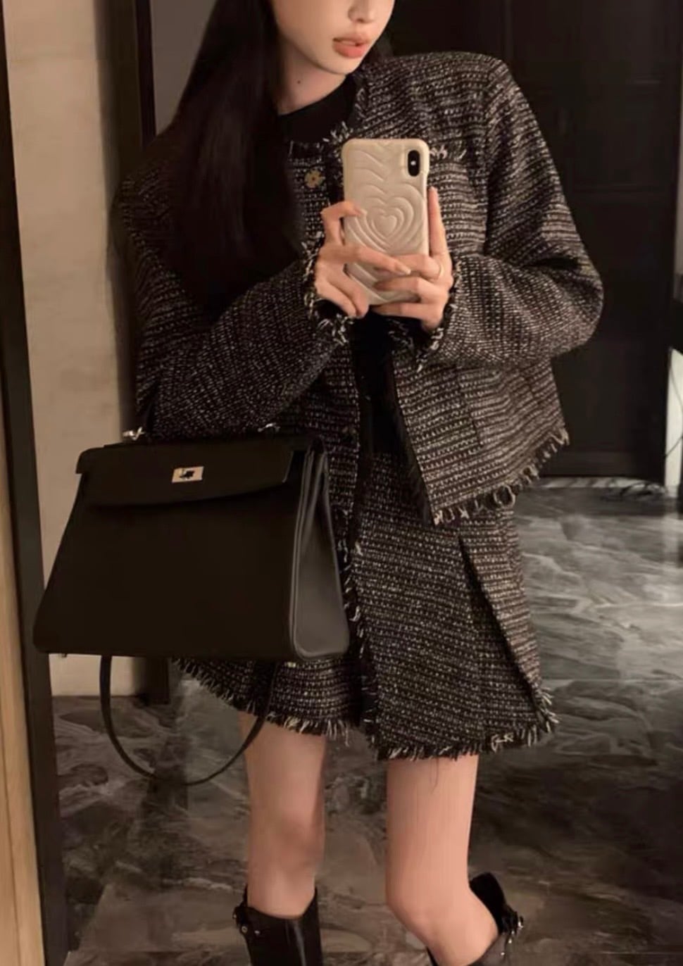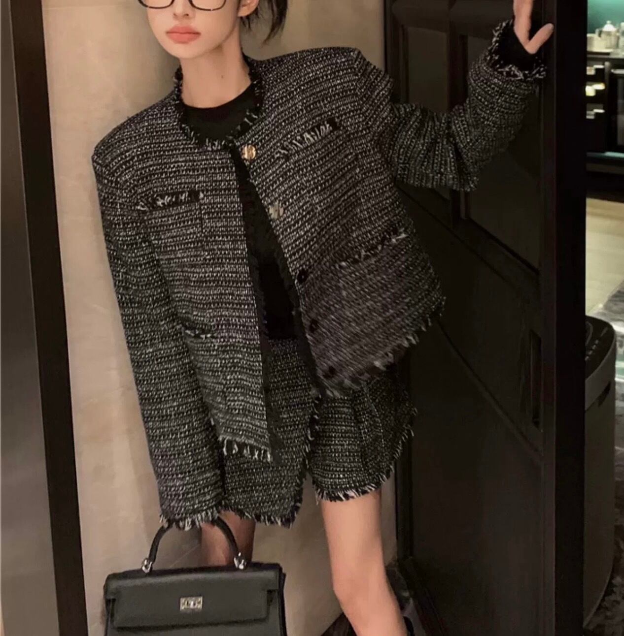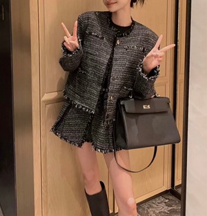 シックツイードフリンジジャケットキュロットセット