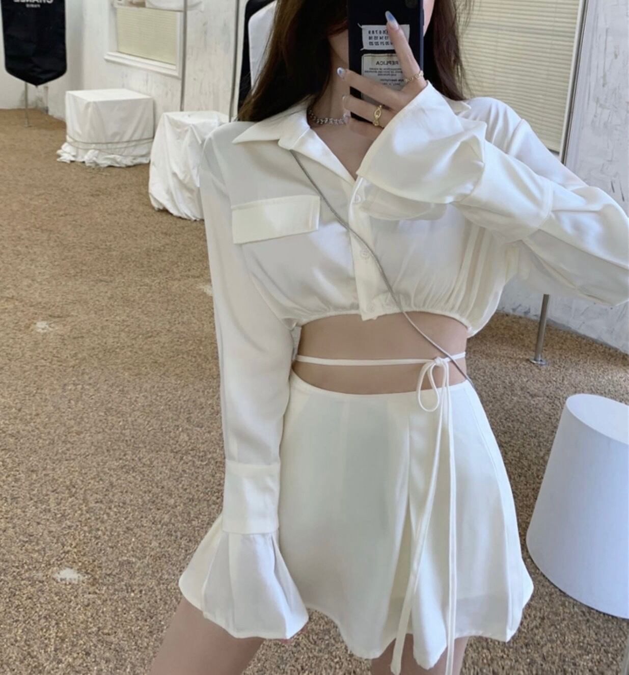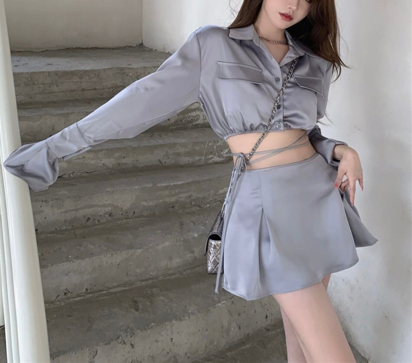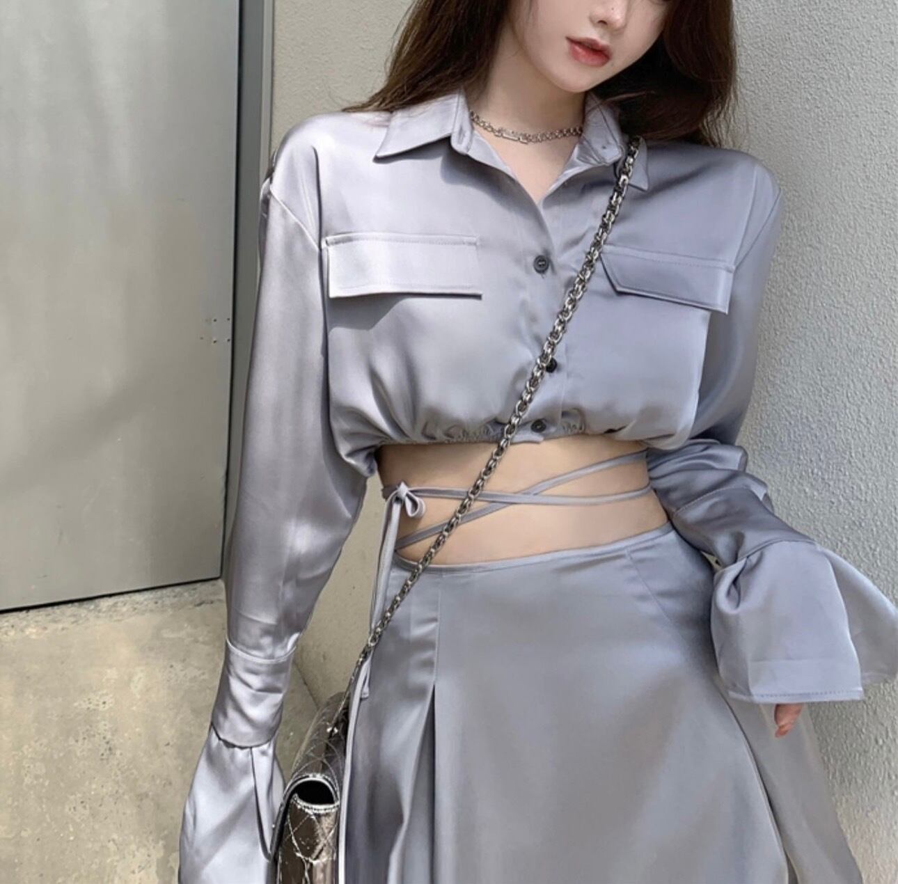 このサテンシャツとレースアップスカートのセットは、エレガントでスタイリッシュなルックスを演出します。上品なサテン素材のシャツは、肌触りが良く、着心地も抜群です。フロントにはボタンが配されており、クラシカルな雰囲気を醸し出しています。一方、レースアップデザインのスカートは、ウエストを程よく引き締めながら女性らしいシルエットを美しく演出します。絶妙なコーディネートが完成する、おしゃれなセットアイテムです。仕事やデート、パーティーなど、様々なシーンで活躍すること間違いなしです。