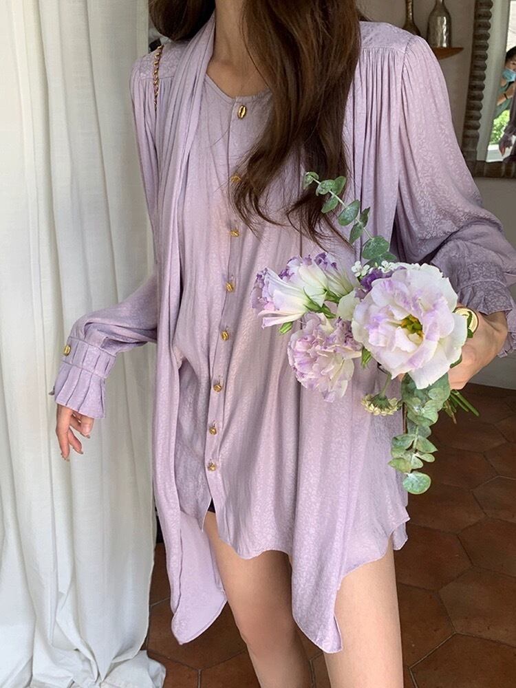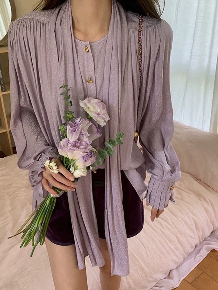 このフレンチパープルジャガードシャツは、洗練されたデザインと上質な素材が特長です。フレンチカフスとパープルのジャガード柄が組み合わさり、エレガントな雰囲気を醸し出します。柔らかな素材が肌触りよく、快適な着心地を提供します。ビジネスシーンや特別なイベントにもぴったりの一着で、華やかさとスタイルを兼ね備えています。流行に左右されないクラシカルなデザインは、長く愛用できる定番アイテムとしてお勧めです。