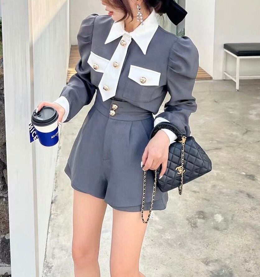 デザインセンスパフスリーブシャツショートパンツセット