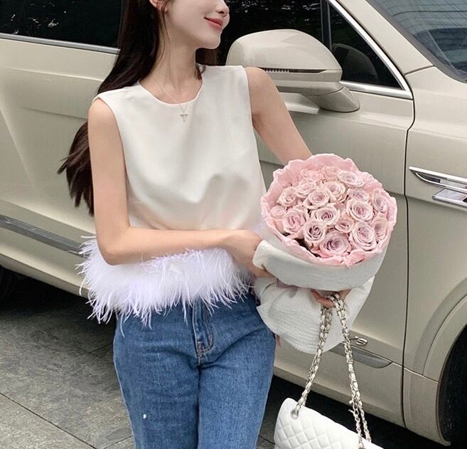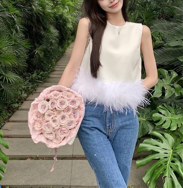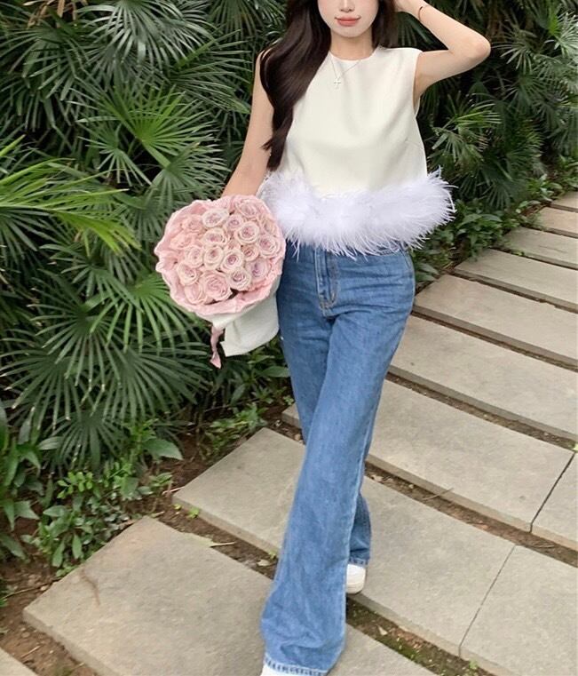 このフリンジファーノースリーブベストは、フェミニンな魅力とエレガントなスタイルを融合した一枚です。ノースリーブデザインは、レイヤードスタイルや季節の移り変わりに合わせやすく、着まわしの利くアイテムです。ファーディテールが上品さをプラスし、スタイリッシュな印象を与えます。フォーマルな場面からカジュアルな日常まで、幅広いスタイリングに活用できるベストです。