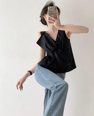 このブラックリボンスタイルノースリーブは、エレガントでスタイリッシュな印象を演出します。ノースリーブデザインが女性らしい肩周りを美しく見せ、リボンがアクセントとなり、上品な雰囲気を加えます。ブラックカラーはどんなシーンにもマッチし、様々なアイテムと組み合わせやすく、着回し力も抜群です。フォーマルな場面からカジュアルな日常まで、幅広いシーンで活躍する一着です。