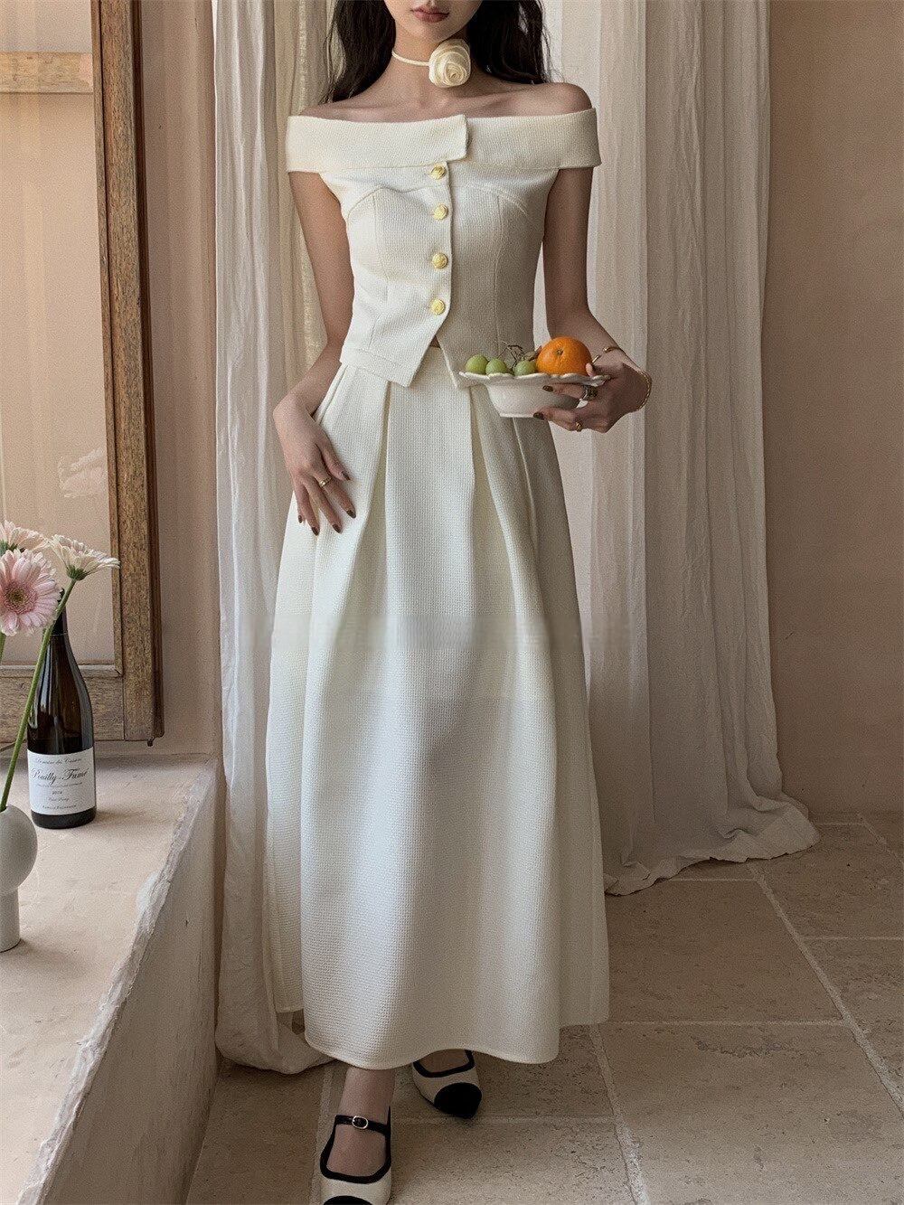 トレンド感溢れるワッフル素材のオフショルダーフレアスカートセットです。オフショルダートップスは肩や腕を美しく見せ、フレアスカートは動きやすく、快適な着心地を提供します。デイリーカジュアルからデートシーンまで幅広く活躍するアイテムです。さらに、コーディネートが簡単なセットアップで、お手持ちのアクセサリーやシューズとも好相性です。