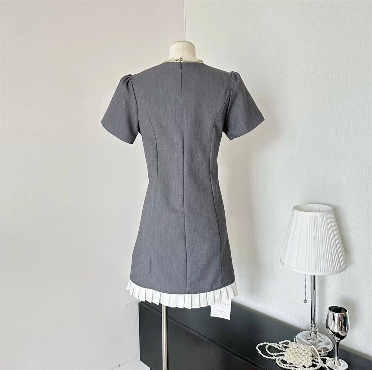 ◇商品説明◇ 上品でフェミニンなデザインが魅力のビジューリボンプリーツミニワンピースです。フロントに配置されたキラキラと輝くビジューリボンが華やかさを演出し、裾のプリーツが動きに優雅さを加えます。シンプルなシルエットながらもディテールにこだわり、日常から特別なシーンまで幅広く活躍する一枚です。 ◇色◇ グレー、ブラック、ホワイト(画像参照) ◇サイズ◇ S/M/L 【S】着丈80cm バスト86cm 袖丈21cm 肩幅34cm ウエスト69cm 【M】着丈81.5cm バスト90cm 袖丈21.5cm 肩幅35cm ウエスト73cm 【L】着丈83cm バスト94cm 袖丈22cm 肩幅36cm ウエスト77cm ◇納期◇ ご注文後(決済完了後)から2週間~4週間 (土日祝は除く) 納期は目安になります。 ※決済完了確認後からの発注となります。 メーカーの都合や入荷時期により遅れる場合もございますので ご了承のほどよろしくお願い申し上げます。 ・メーカー側より直送での発送となります。 稀に在庫切れの場合がございますが万が一、在庫切れの場合は欠品の連絡、キャンセル処理をさせて頂きます。 【ご購入前に】 ご利用ガイドを必ずお読み下さい。 ・商品画像と実物の色には多少見え方に誤差がございます。 ・記載された目安サイズは商品によって1-3cmほど差がある場合がございますので、目安としてご活用ください。 ・海外製品のため、日本製より縫製等が若干劣る場合がございますが不良品ではございませんので予めご了承下さい。 ・お取り寄せ先の情報との誤差により、在庫を確保できない場合がございますので予めご了承くださいませ。 ・お客様都合での返品交換はお受け出来かねますのでサイズやカラーのお間違いのないようご確認下さいませ。 ご購入前に必ずお買い物ガイドをお読み下さいませ。