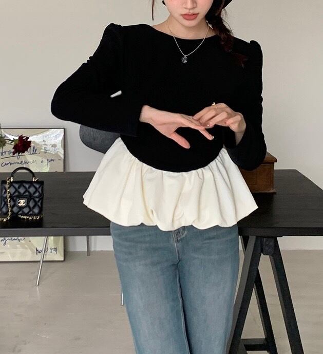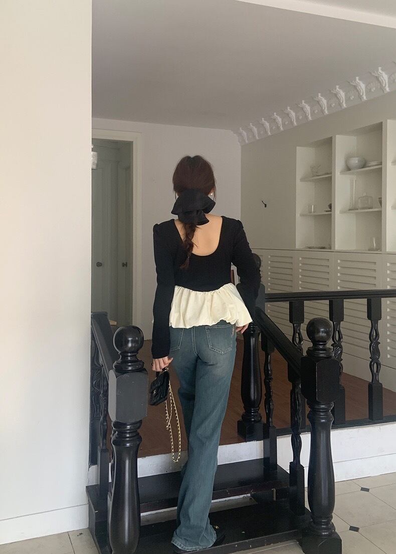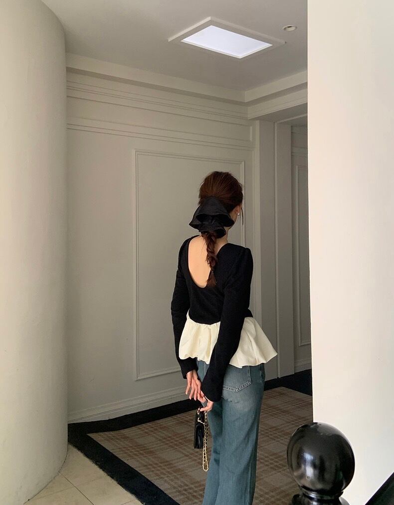 バックオープンプぺラムフリルトップス
