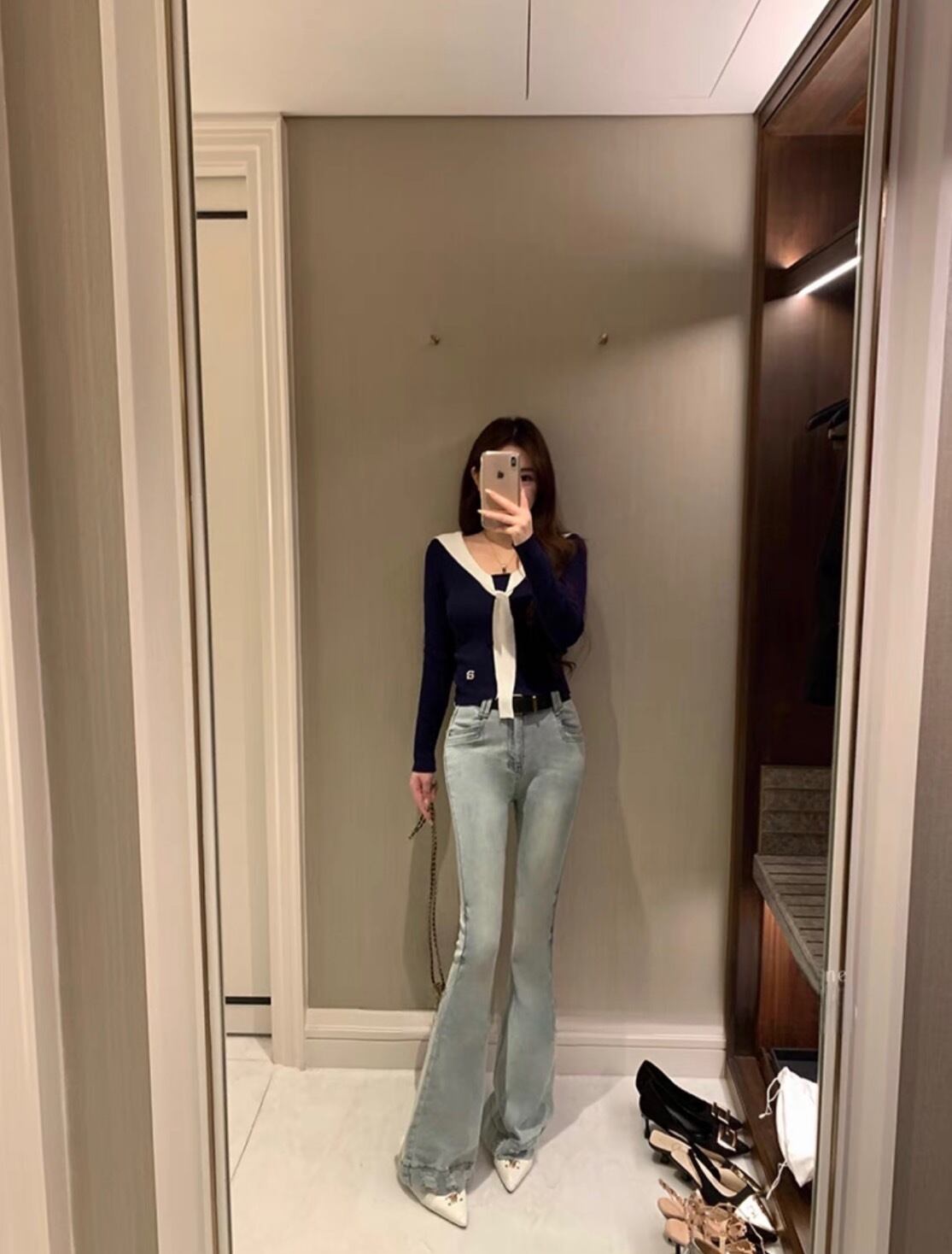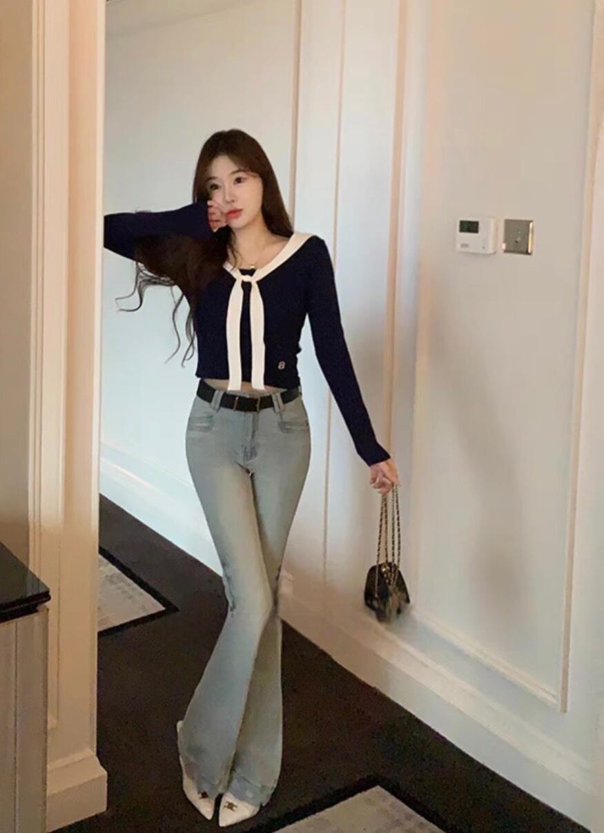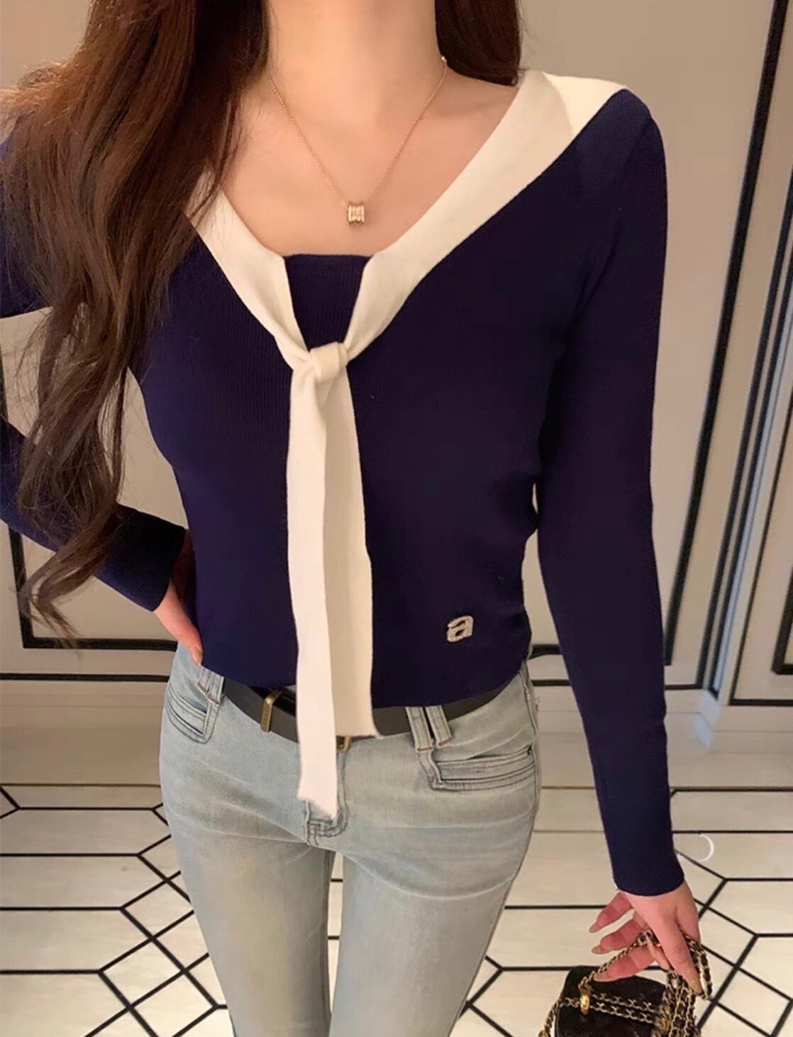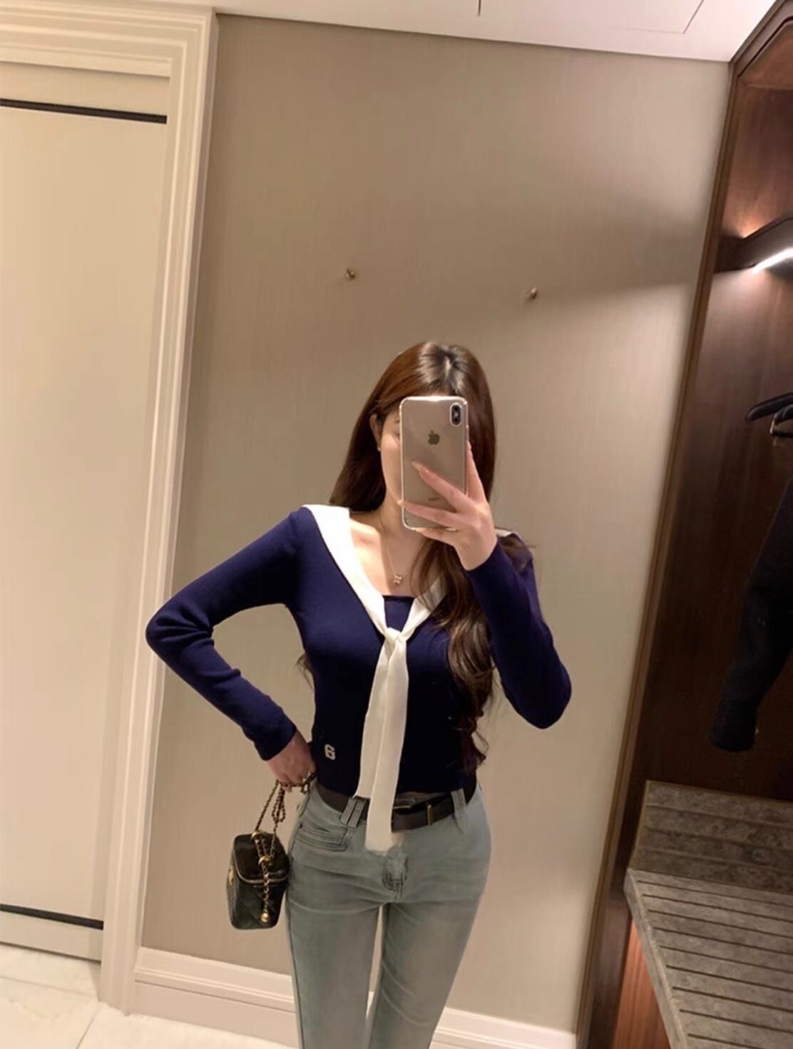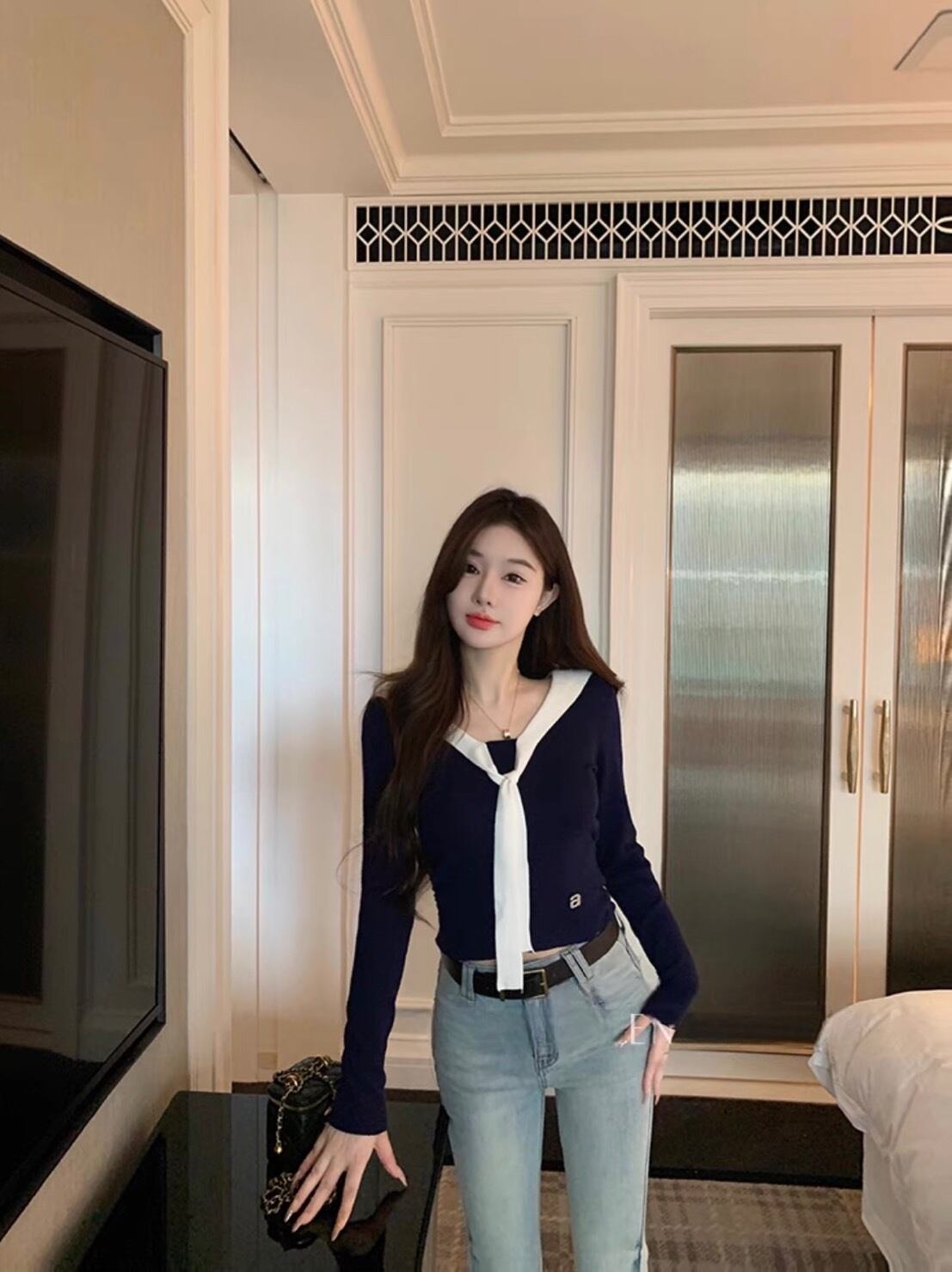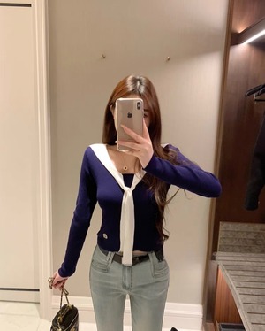 上品なセーラーカラーとリボンデザインが魅力のニットトップス。柔らかい素材感で着心地抜群、女性らしさを引き立てるシルエットが特徴です。デニムやスカートと合わせてカジュアルからフェミニンまで幅広いコーディネートを楽しめます。