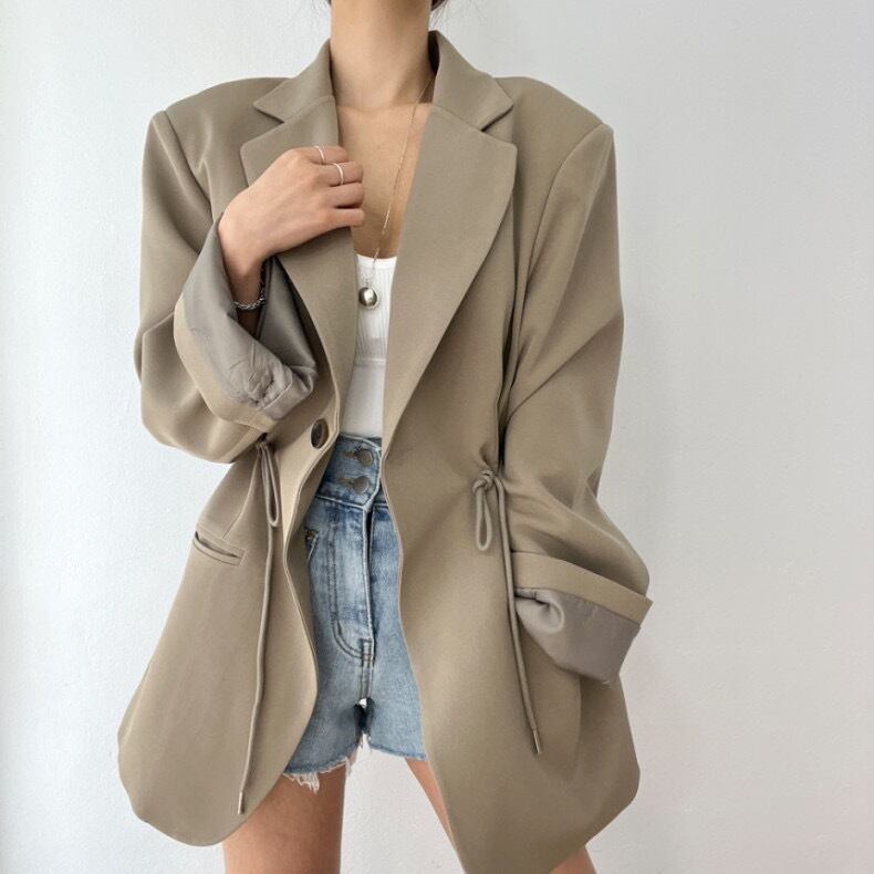 ウエストのドローストリングデザインでシルエット調整が可能なカジュアルジャケット。ゆるやかなフィット感と軽やかな素材感が魅力。デニムやスカートとも相性抜群で、こなれ感のあるスタイリングを簡単に楽しめる一着です。